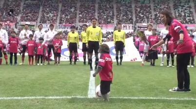 请嘉宾来为比赛开球在足坛并不是什么新鲜事,可如果担任开球嘉宾的不是人类而是动物,那会是怎样的一番景象呢?在上周末(11月26日)进行的日本J联赛第33轮,大阪樱花主场迎战神户胜利船的比赛开始之前,主队就别出心裁地请来了一只可爱的小猴子为比赛开球。不过这一标新立异的行为随即引发了一片热议。